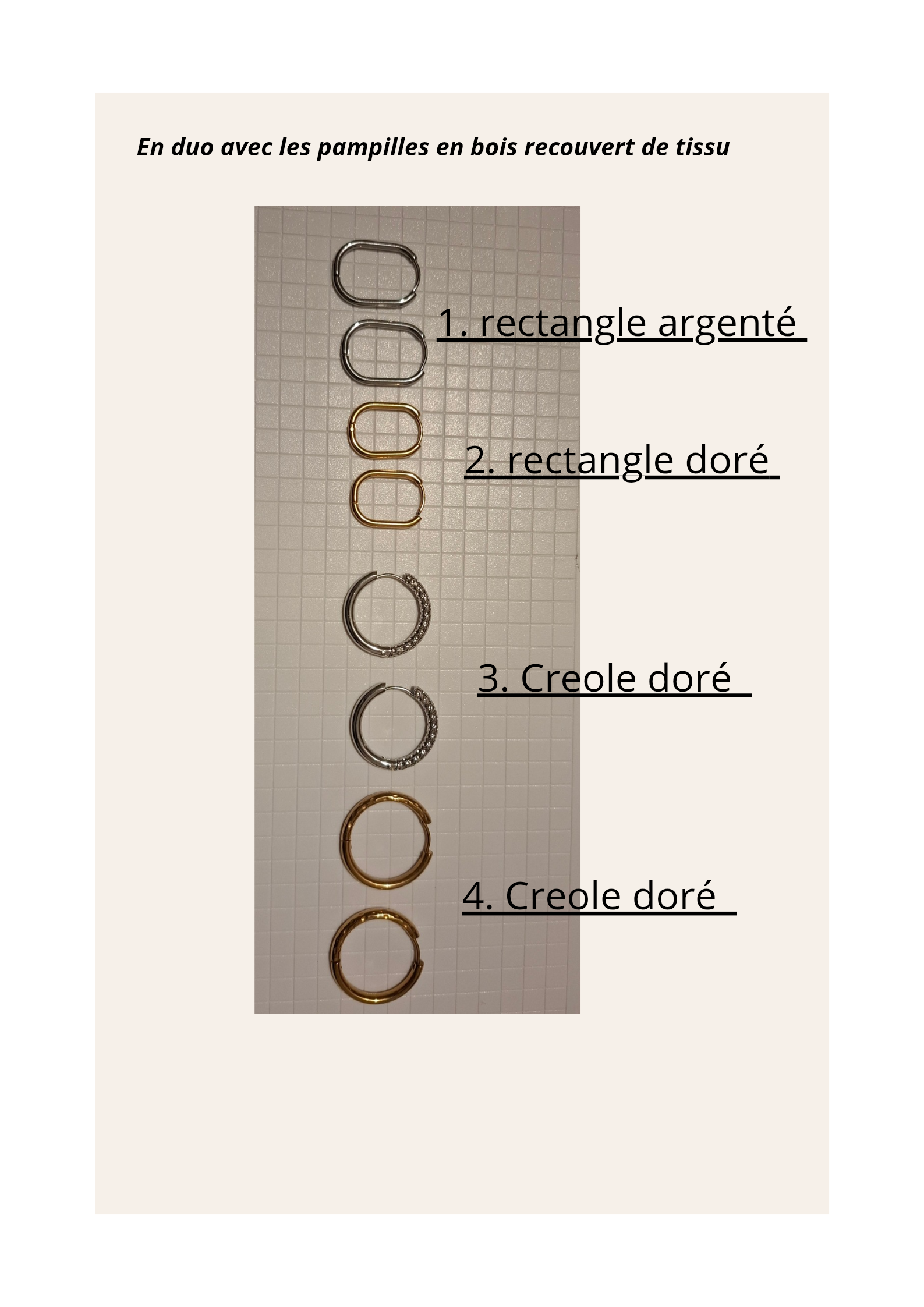 + Free Shipping| Attaches | 1.rectangulaire argentée/2.rectangulaire dorée/3.créole dorée/4. créole argentée |