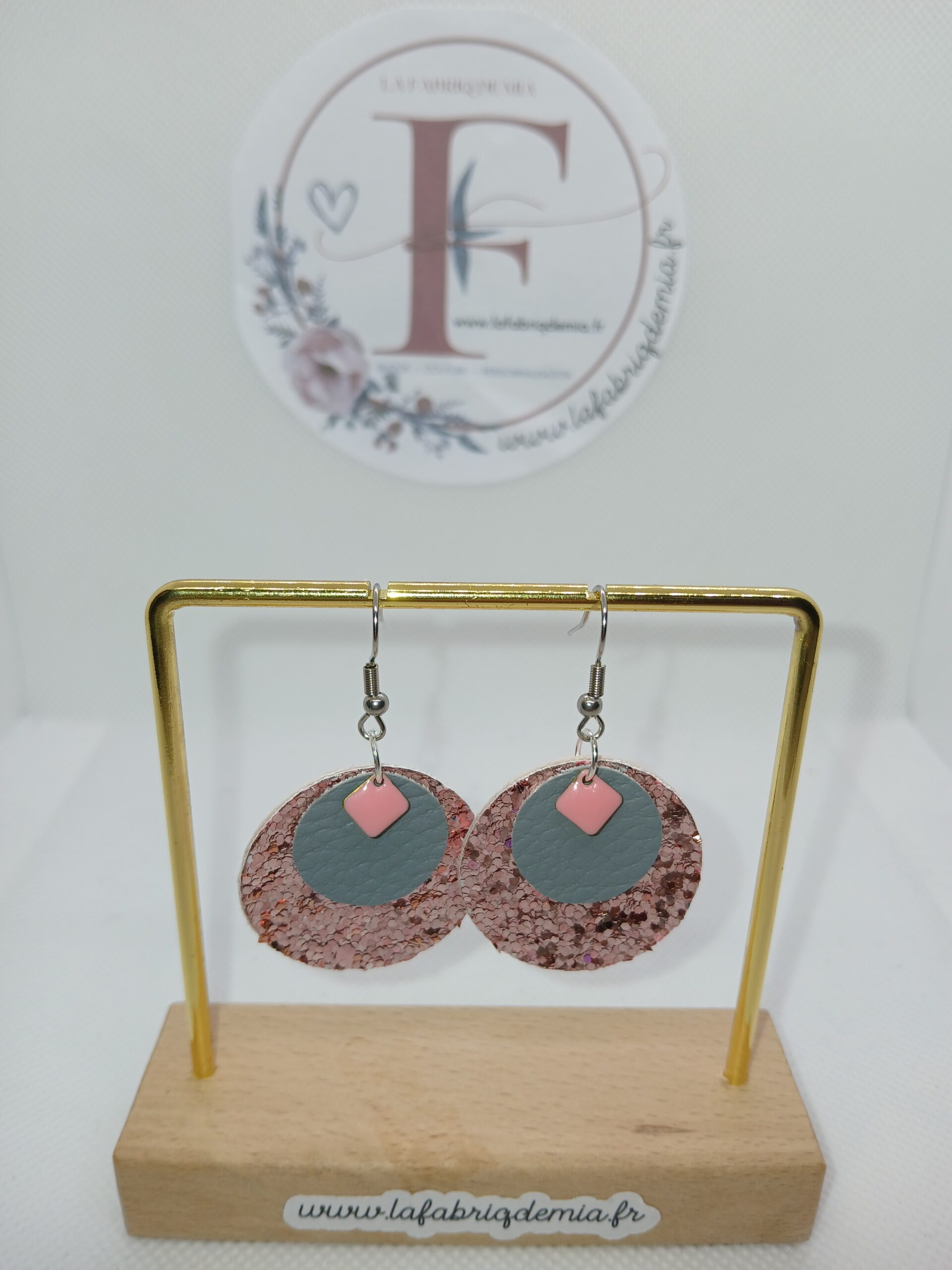 La boucle d’oreille est composée de 2 ronds en tissu enduit argenté et rose