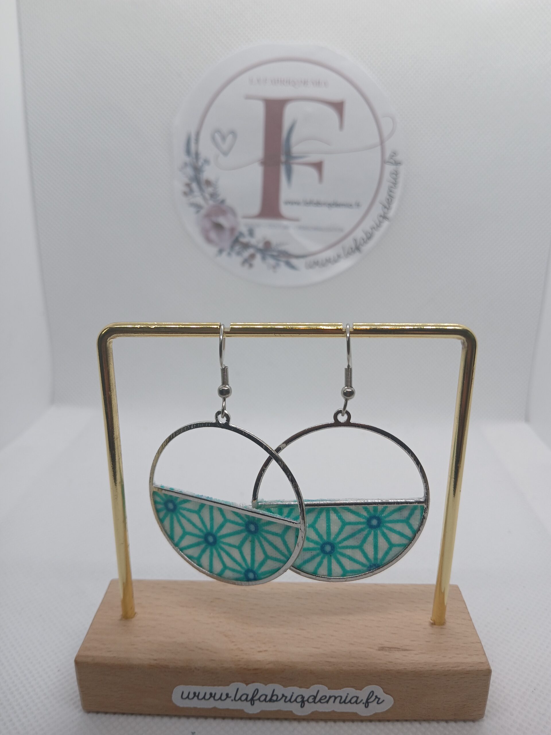 Attaches acier inoxydable argentées, Boucles d'oreilles, Tissu coton