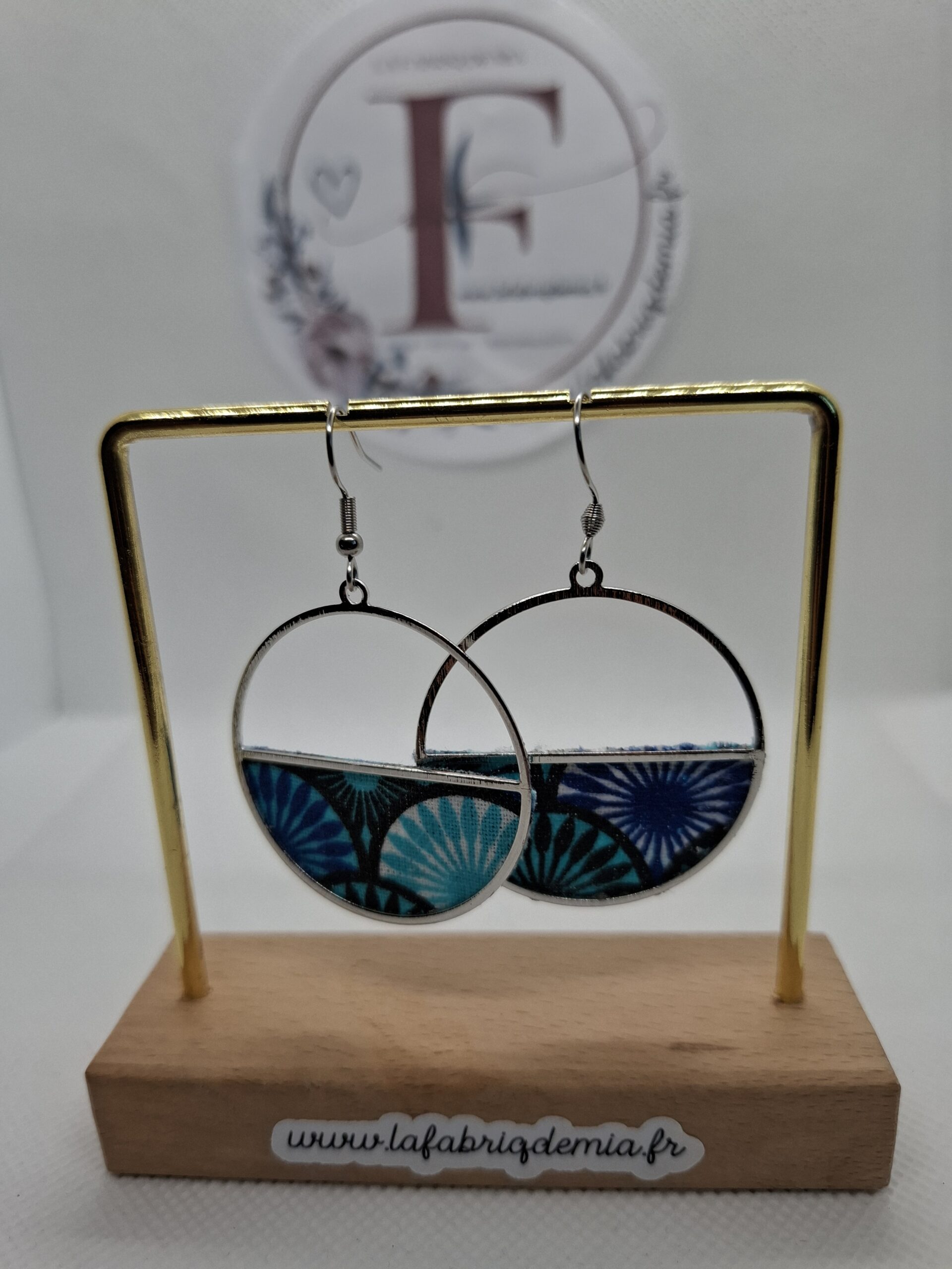 Attaches acier inoxydable argentées, Boucles d'oreilles, Tissu coton