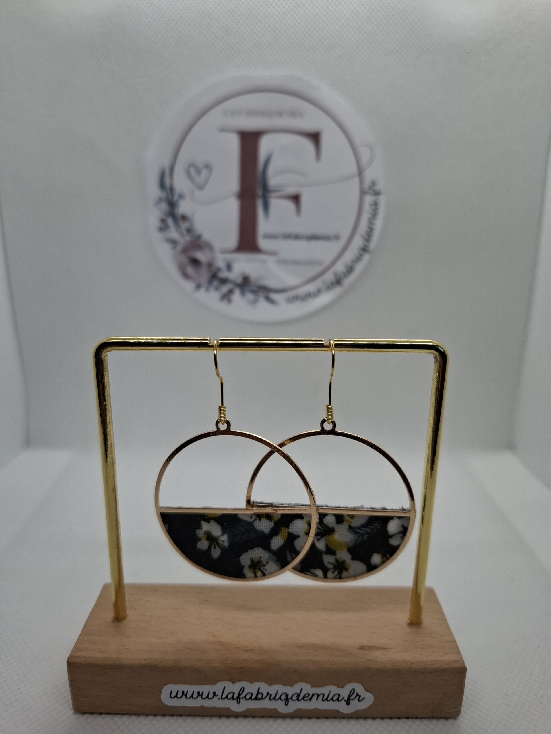 Attaches acier inoxydable dorées, Boucles d'oreilles, Tissu coton