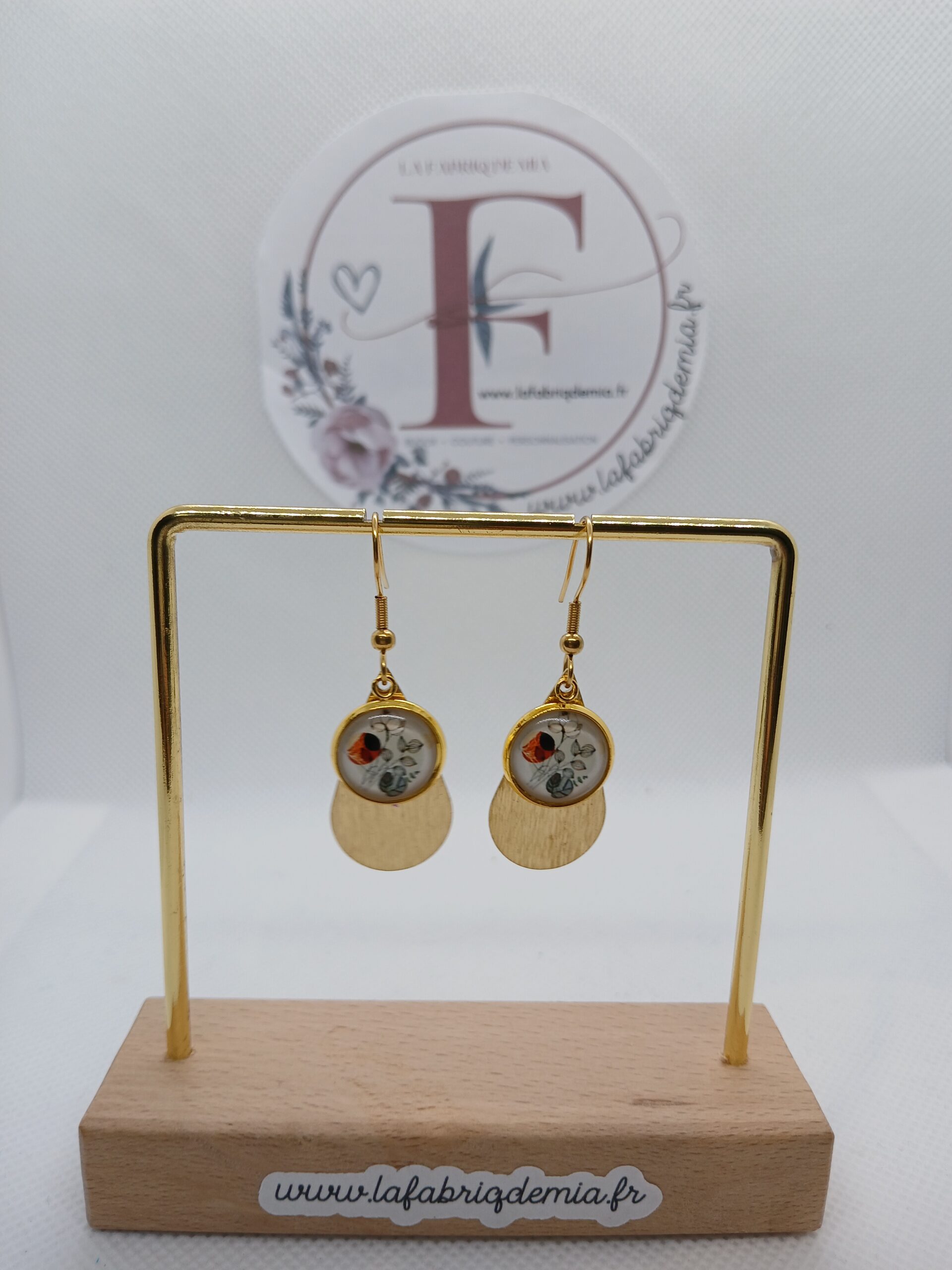 La boucle d’oreille est composée d’une goutte de 2,6cm et d’un cabochon 1,2cm
