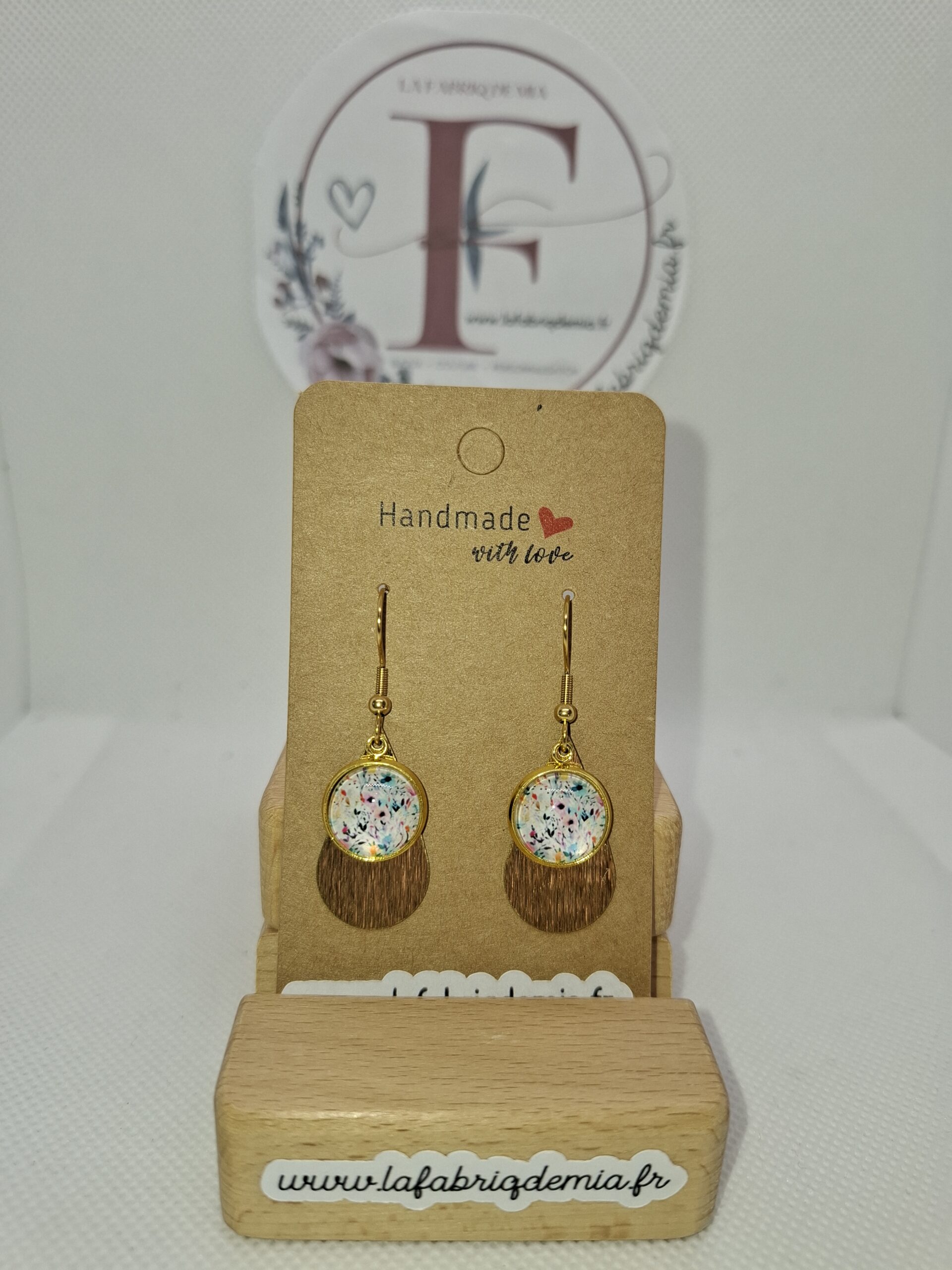 La boucle d’oreille est composée d’une goutte de 2,6cm et d’un cabochon 1,2cm