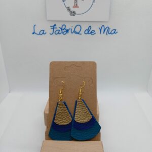 La boucle d’oreille est composée de tissu enduit marron, dorée et liége