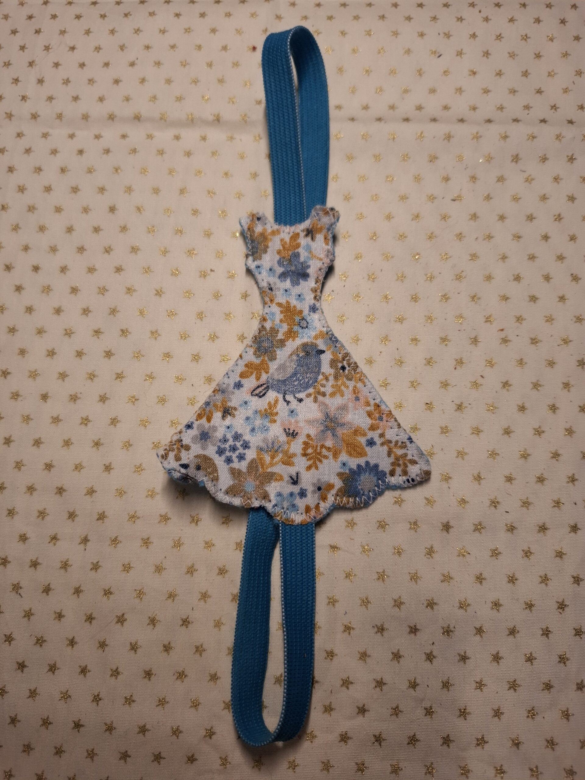 Marque page en tissu coton en forme de Robe. Elastique Taille de la robe environ 9,5X8CM Taille de l’élastique variable