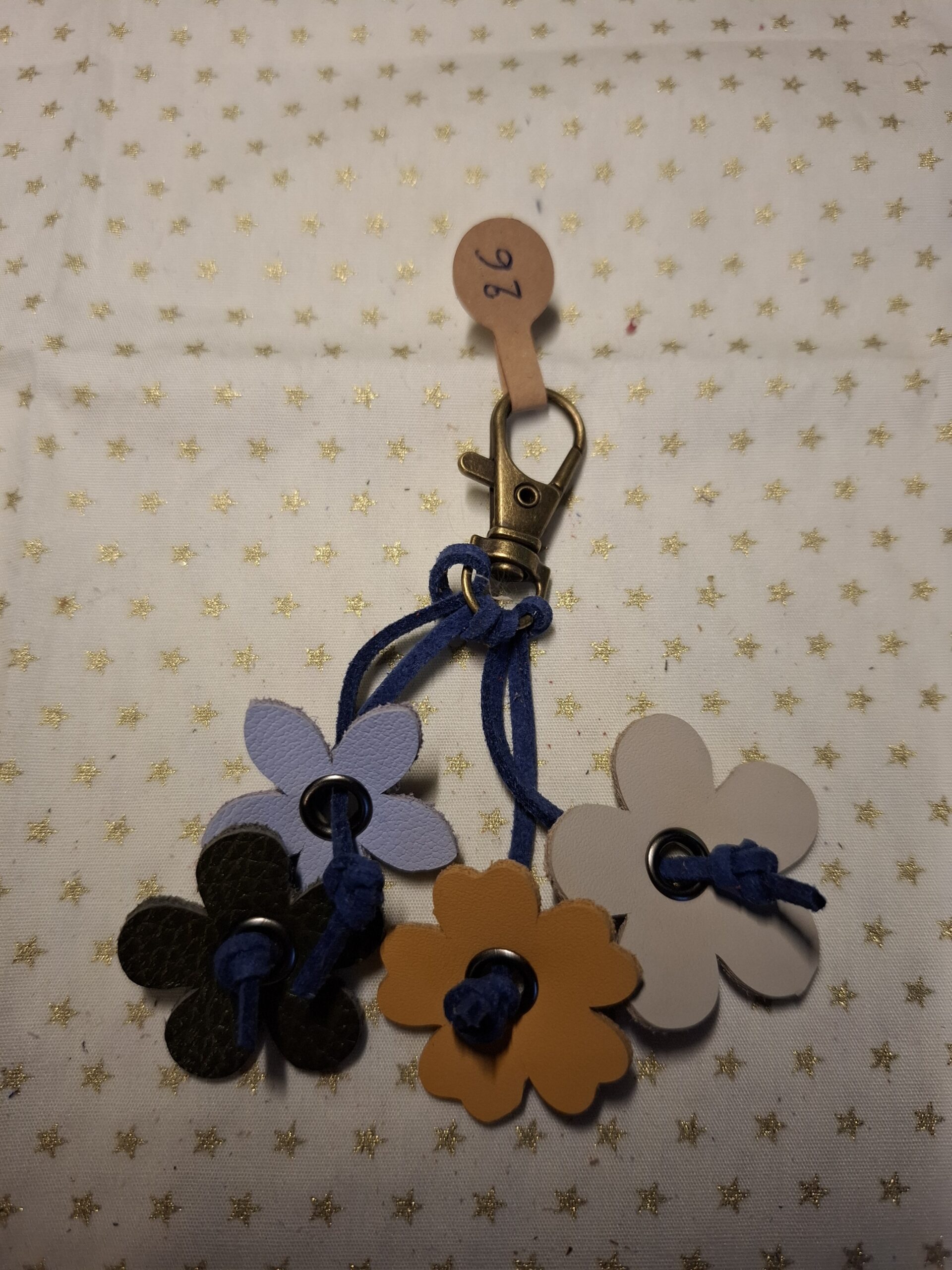 Porte clés cuir fleurs et étoiles