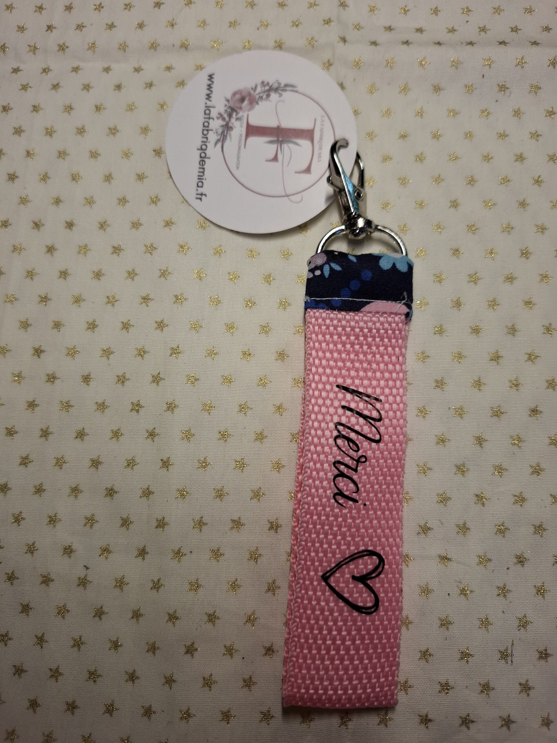 Porte clé message en coton, sangle et vinyle
