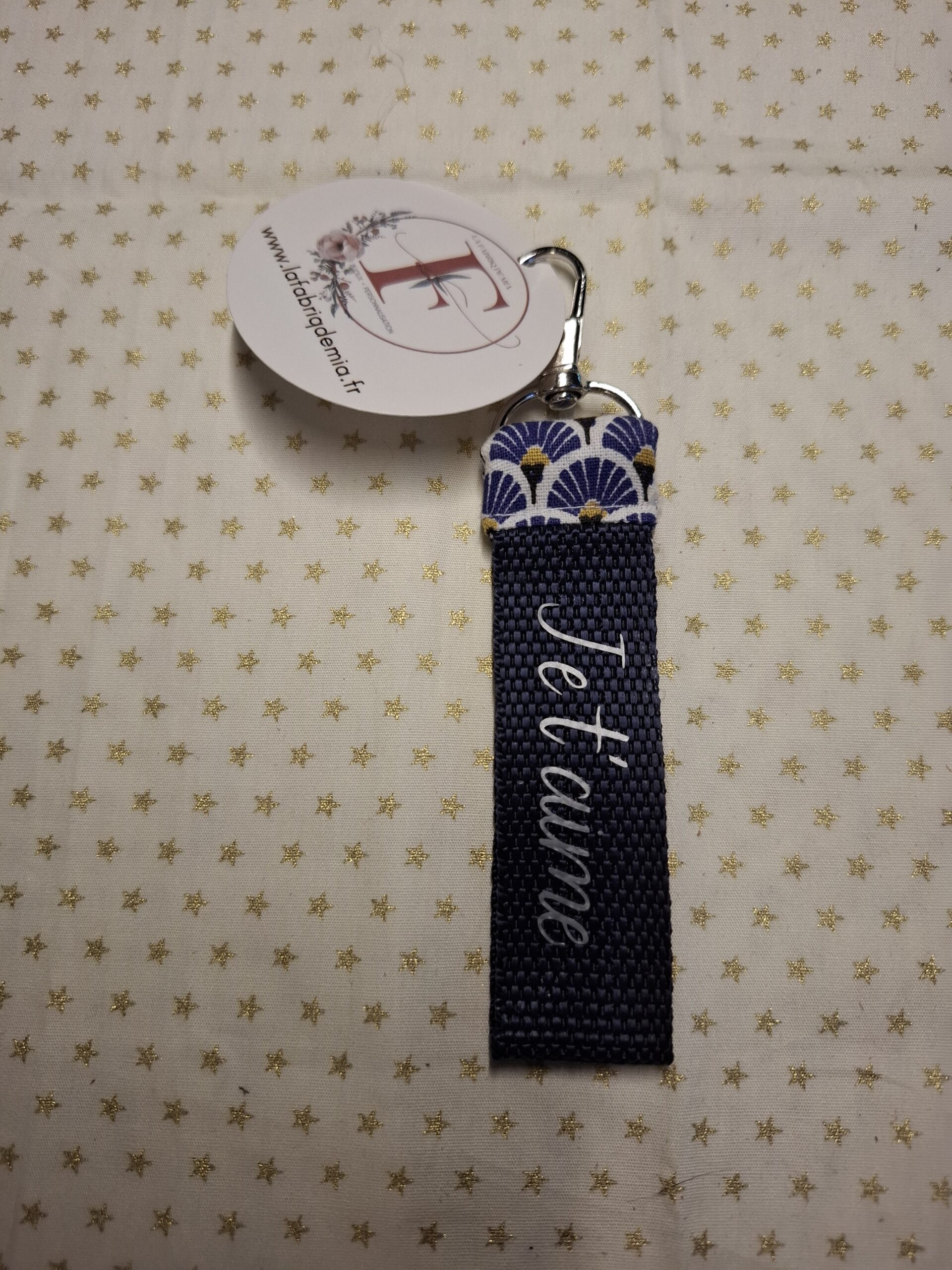Porte clé message en coton, sangle et vinyle