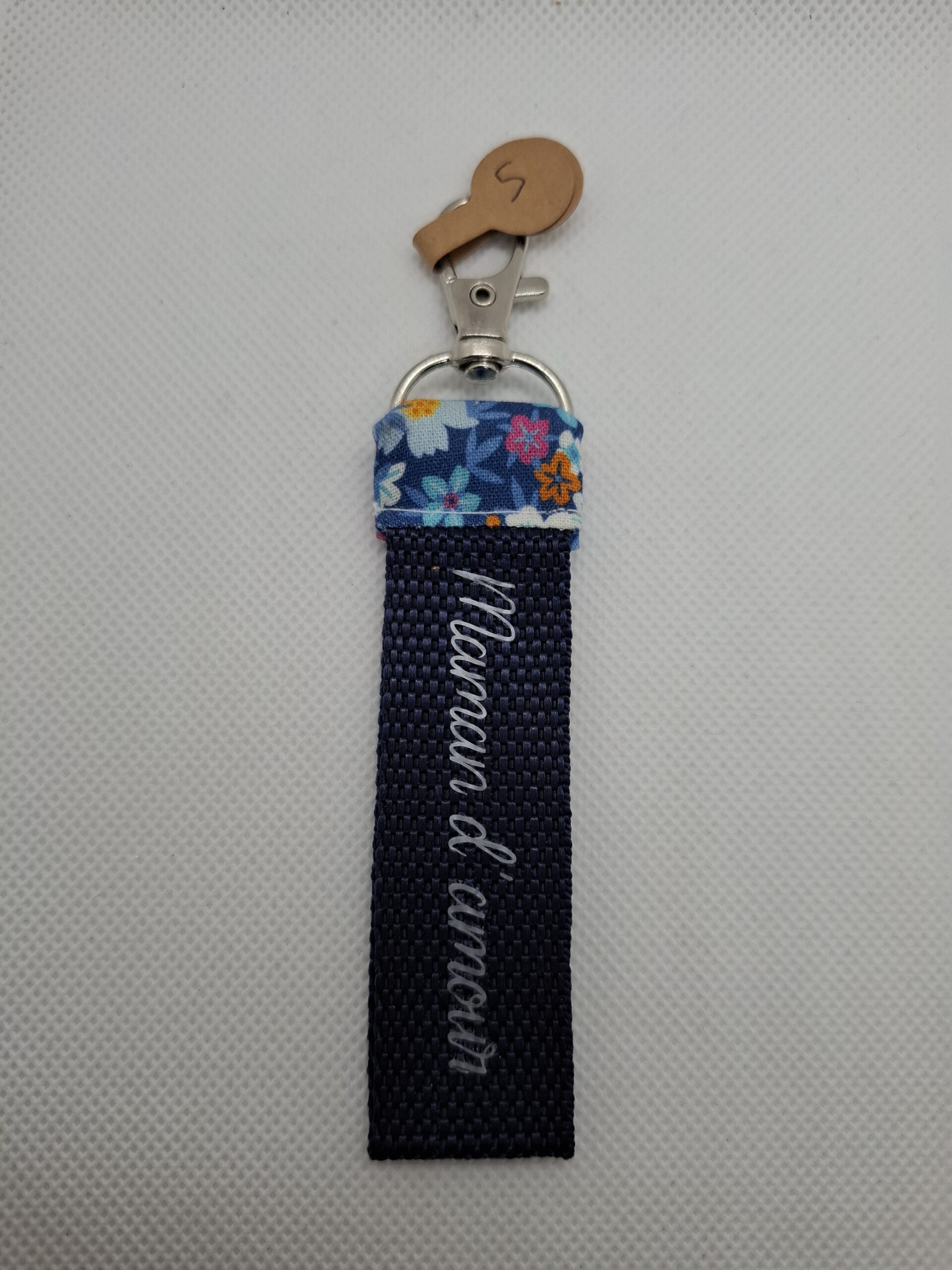 Porte clé message en coton, sangle et vinyle