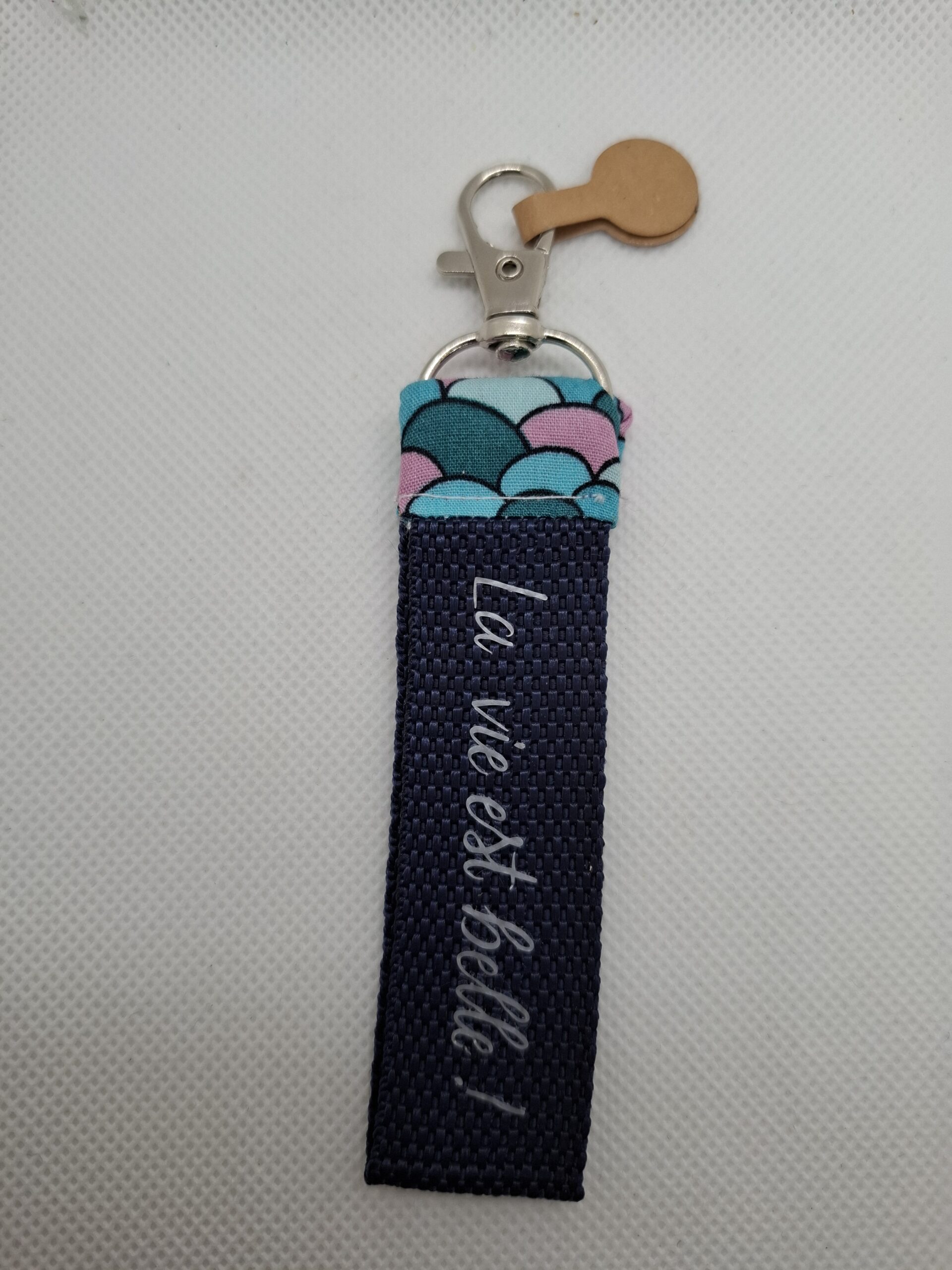 Porte clé message en coton, sangle et vinyle